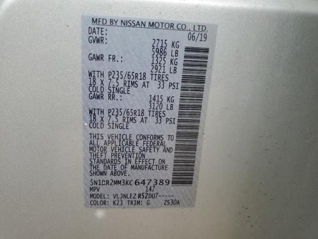 | VIN: | 5N1DR2MM3KC647389 |