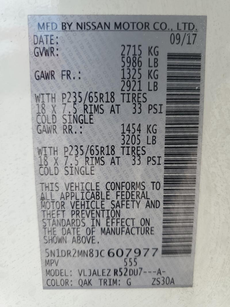 | VIN: | 5N1DR2MN8JC607977 |