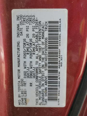 | VIN: | 5TBBT4815YS099906 |