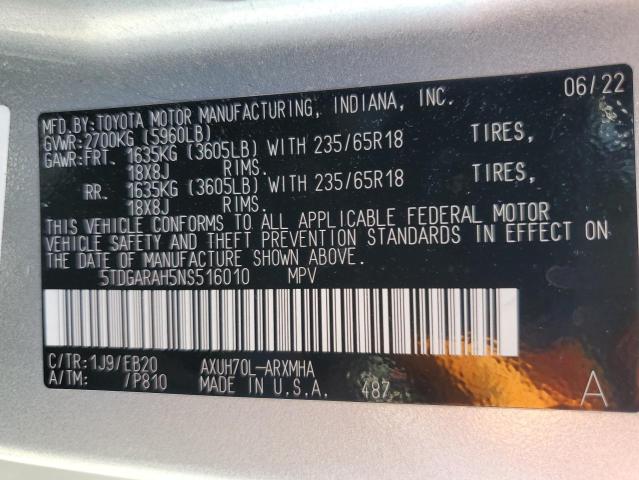 | VIN: | 5TDGARAH5NS516010 |