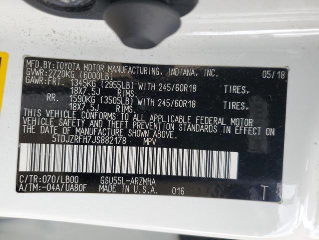 | VIN: | 5TDJZRFH7JS882178 |