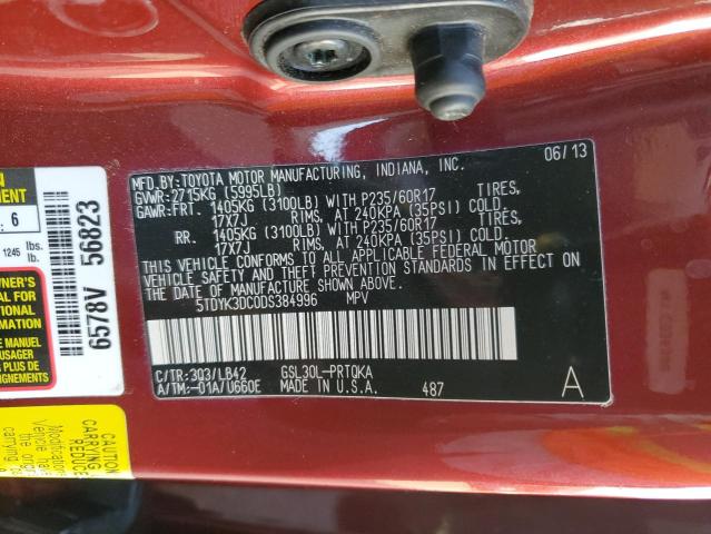 | VIN: | 5TDYK3DC0DS384996 |