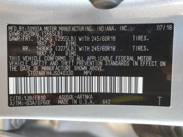 | VIN: | 5TDZARFH4JS040330 |