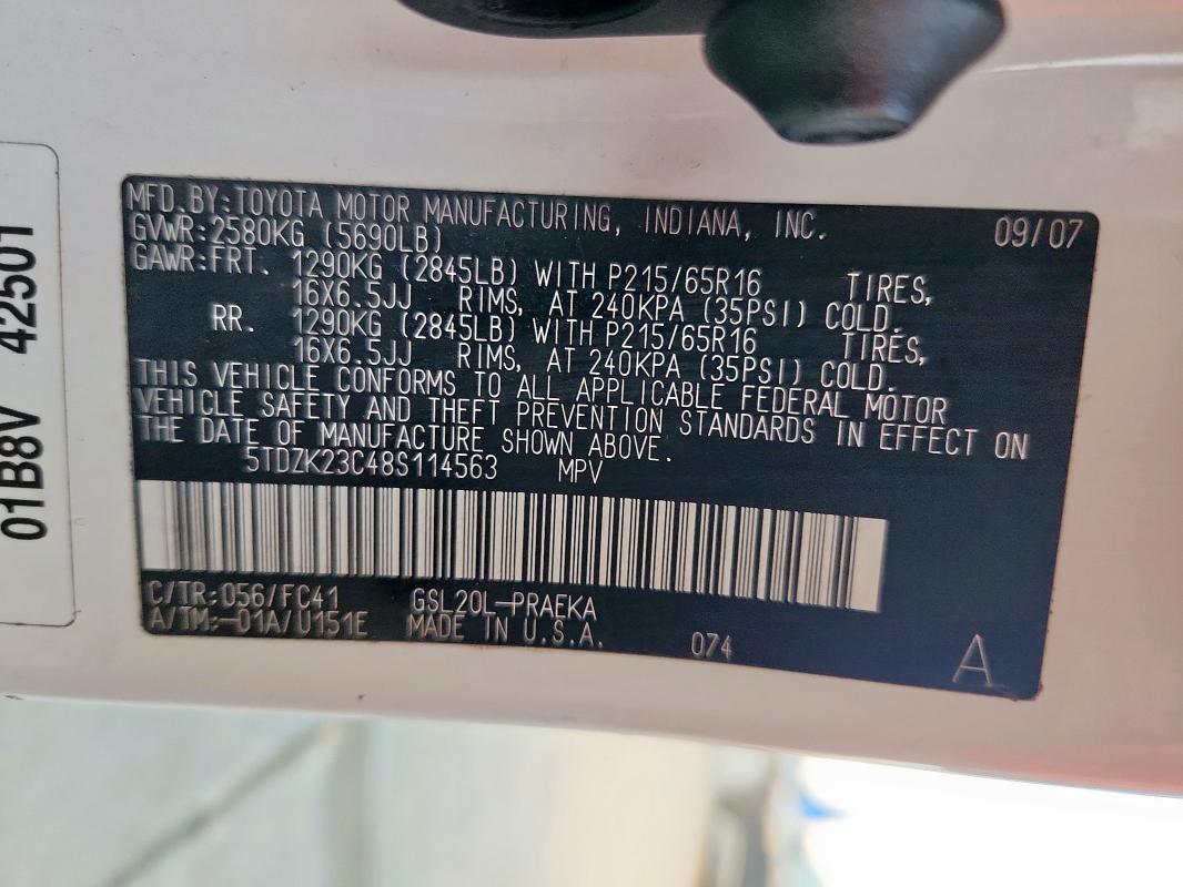 | VIN: | 5TDZK23C48S114563 |