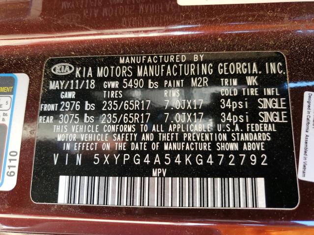 | VIN: | 5XYPG4A54KG472792 |