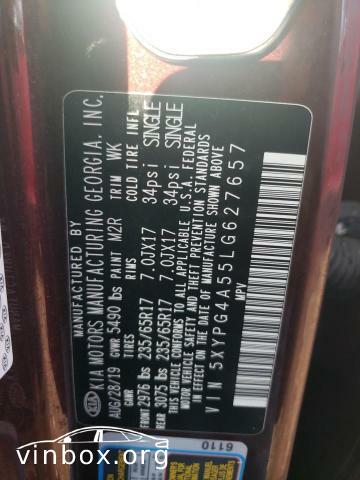 | VIN: | 5XYPG4A55LG627657 |