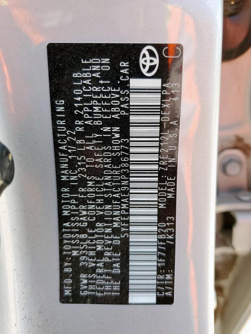 | VIN: | 5YFEPMAE9NP386773 |