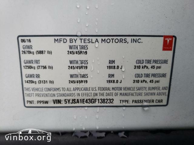 | VIN: | 5YJSA1E43GF138232 |