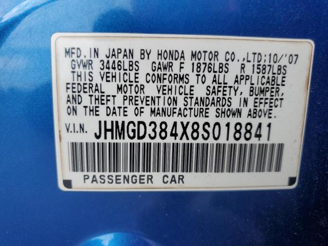 | VIN: | JHMGD384X8S018841 |