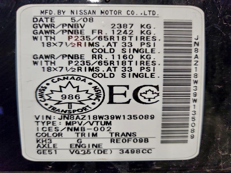 | VIN: | JN8AZ18W39W135089 |