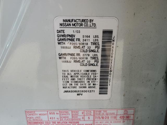 | VIN: | JNRAS08UX3X001271 |