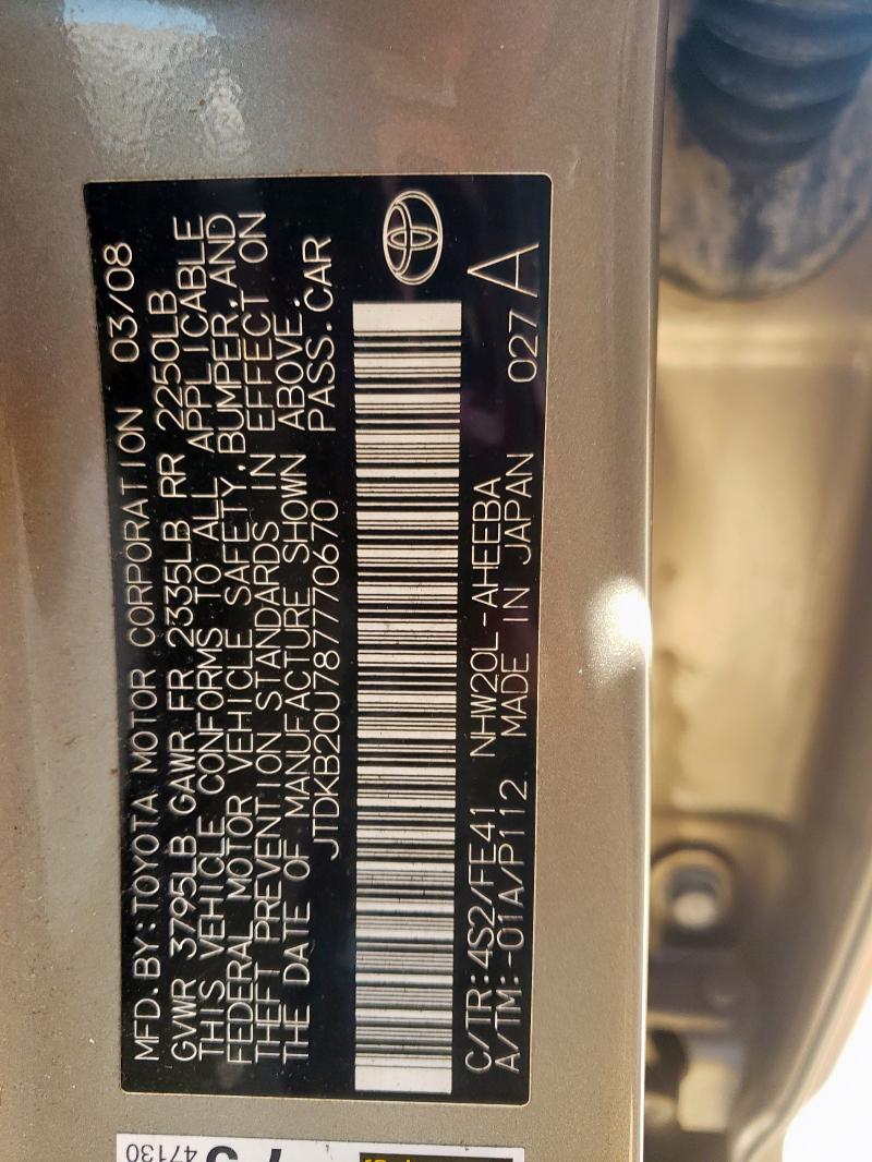 | VIN: | JTDKB20U787770670 |