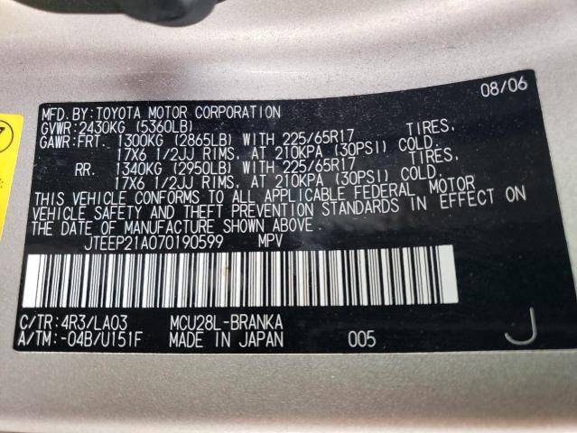 | VIN: | JTEEP21A070190599 |
