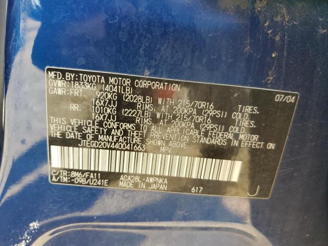 | VIN: | JTEGD20V440041663 |