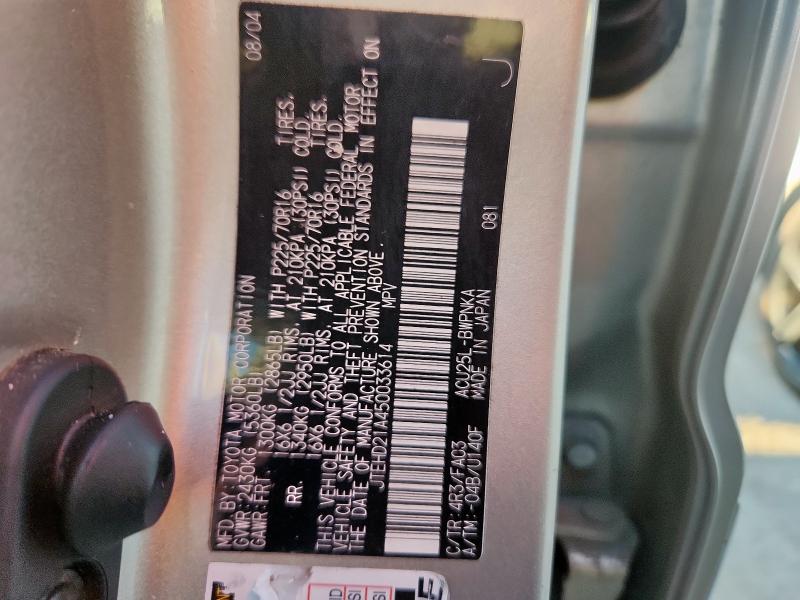 | VIN: | JTEHD21A450033614 |