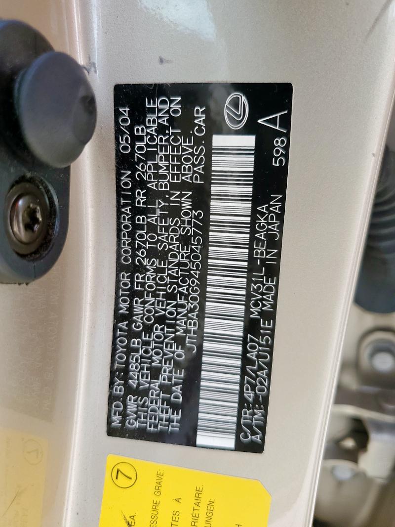 | VIN: | JTHBA30G945045773 |