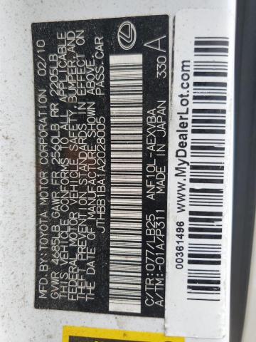 | VIN: | JTHBB1BA1A2028005 |