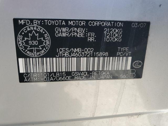| VIN: | JTHBJ46G372115898 |