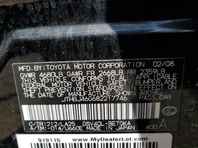 | VIN: | JTHBJ46G682217746 |