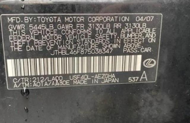 | VIN: | JTHBL46F875038347 |