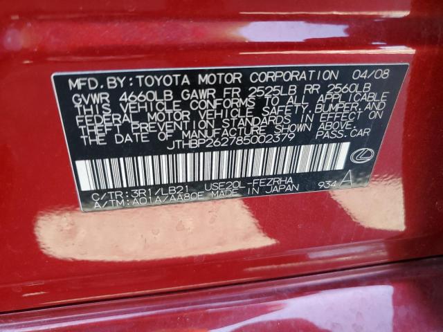 | VIN: | JTHBP262785002379 |