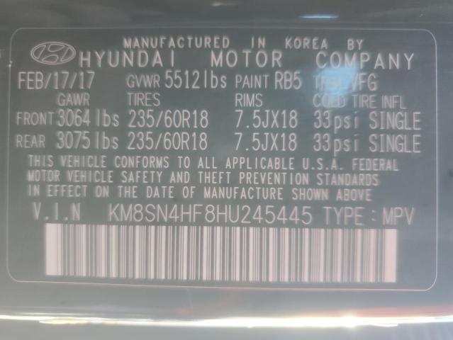 | VIN: | KM8SN4HF8HU245445 |
