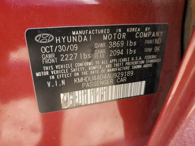 | VIN: | KMHDU4AD4AU929189 |