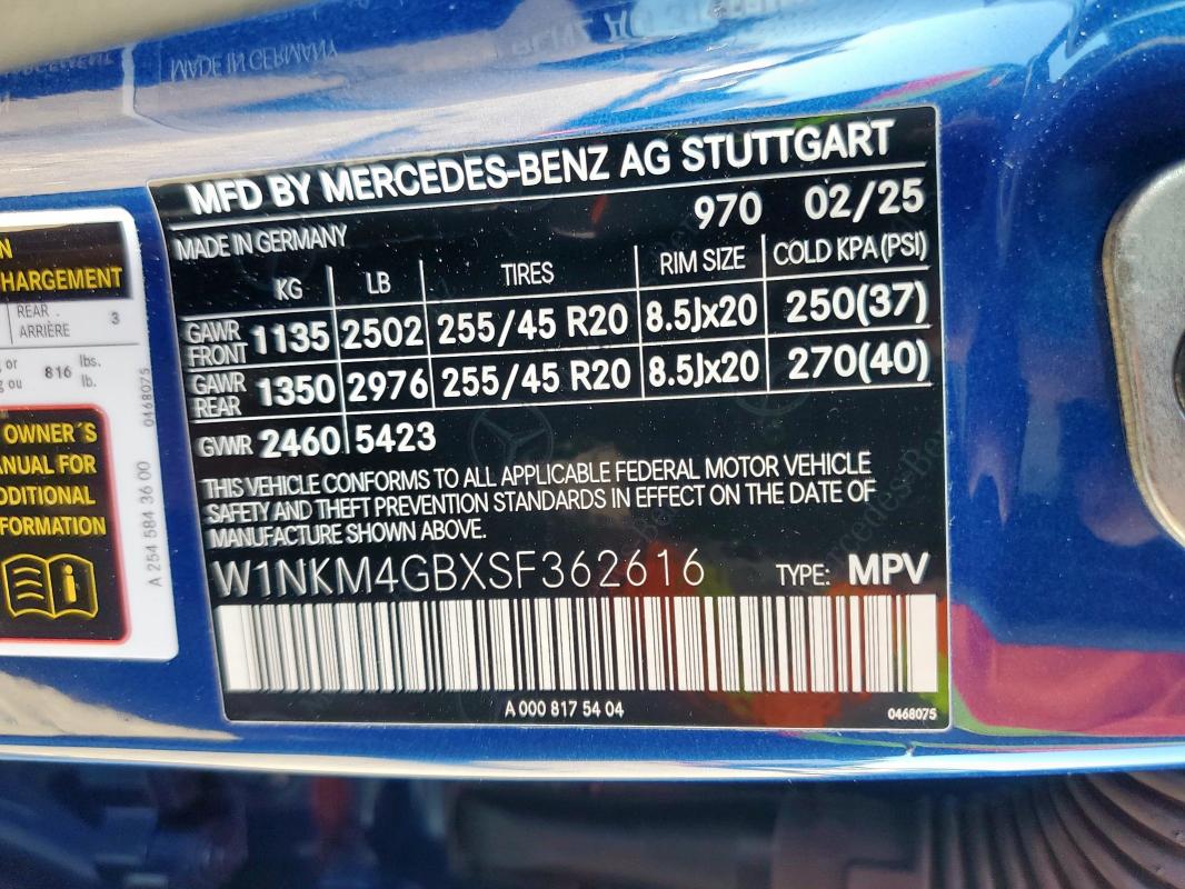 | VIN: | W1NKM4GBXSF362616 |