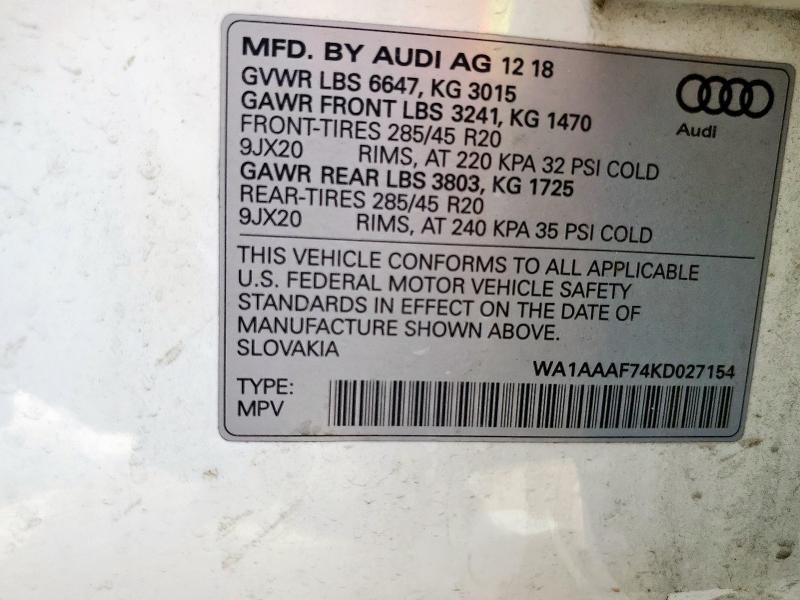 | VIN: | WA1AAAF74KD027154 |