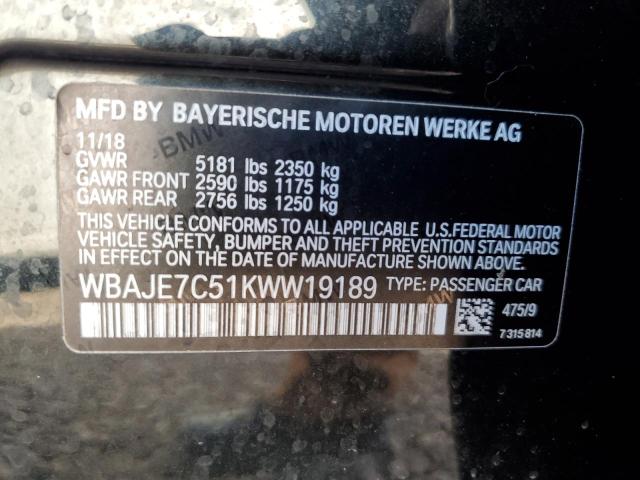 | VIN: | WBAJE7C51KWW19189 |