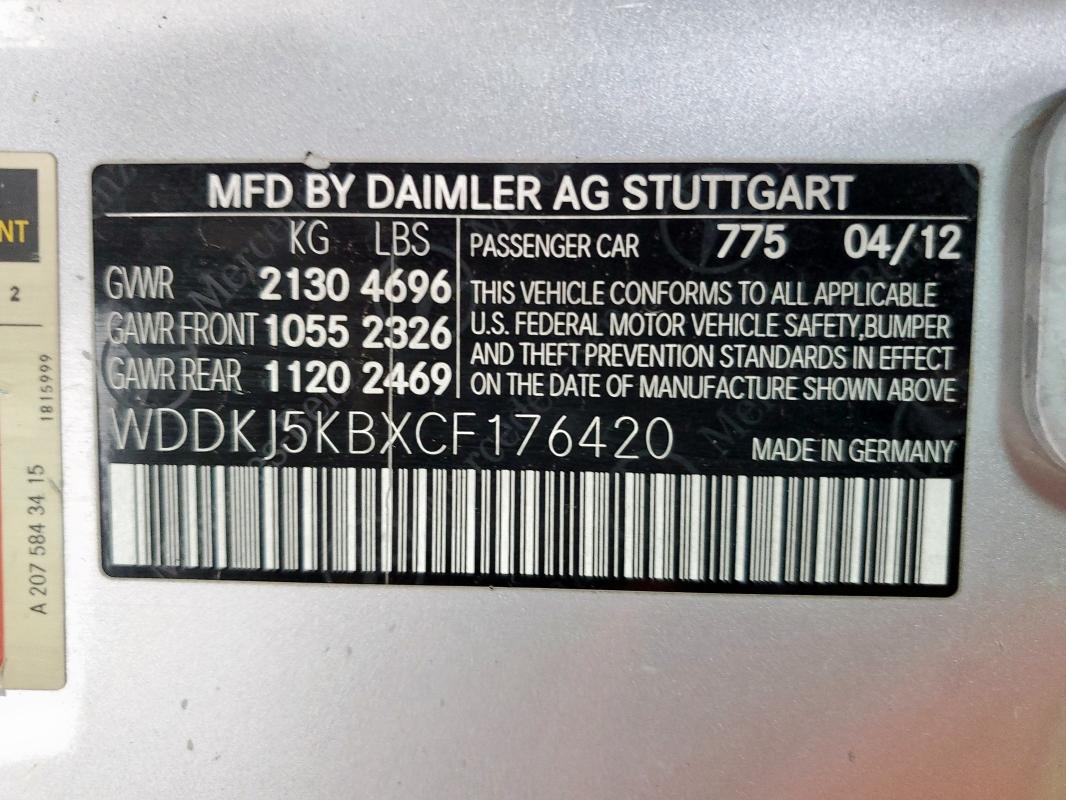 | VIN: | WDDKJ5KBXCF176420 |